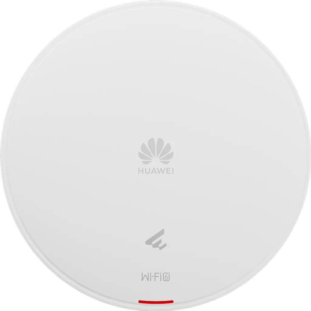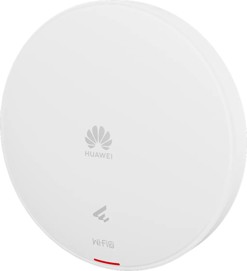 Access Point Huawei AP362E WiFi 6 de doble banda (2.975 Gbps), soporta 100 usuarios concurrentes con puerto Gigabit Ethernet y alcance óptimo de 20m. Perfecto para oficinas y espacios comerciales.