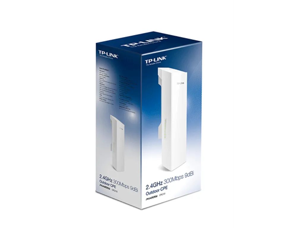 CPE210 TP-LINK 2,4GHz 9dBi 2×2 27dBm 2-100 inc-PoE24V-24W 65×35º Exterior