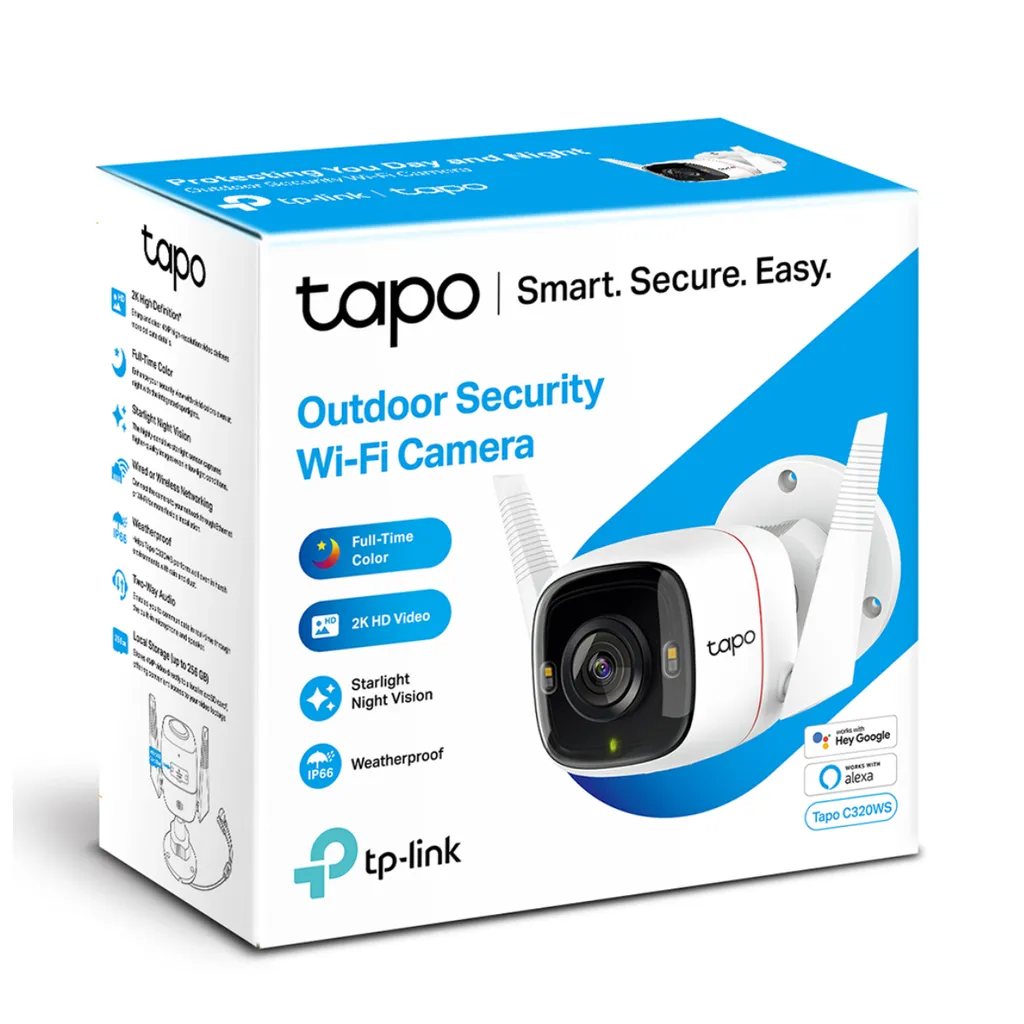 Tapo C320WS. Cámara IP Tapo wifi exterior tipo bullet 2K visión nocturna a color almacenamiento de hasta 256GB control por voz con asistente de Google y Amazon Alexa